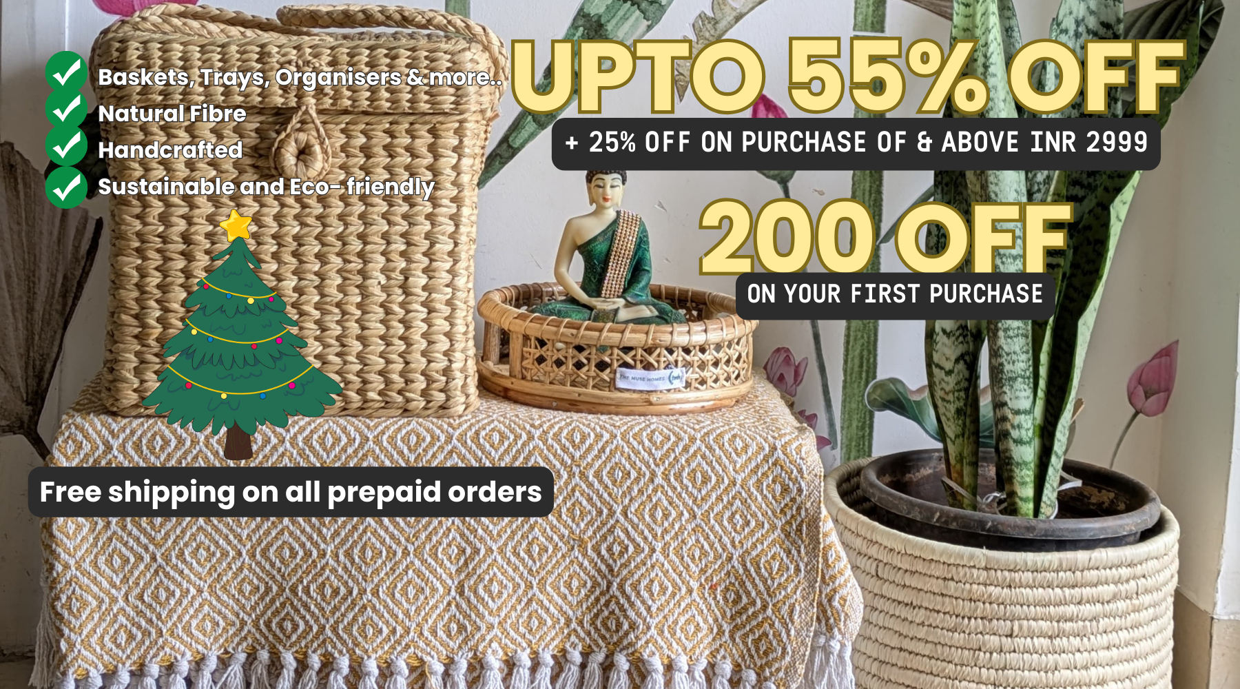 Handcrafted Sabai Grass Sunkissed Wall Basket- Set of 3