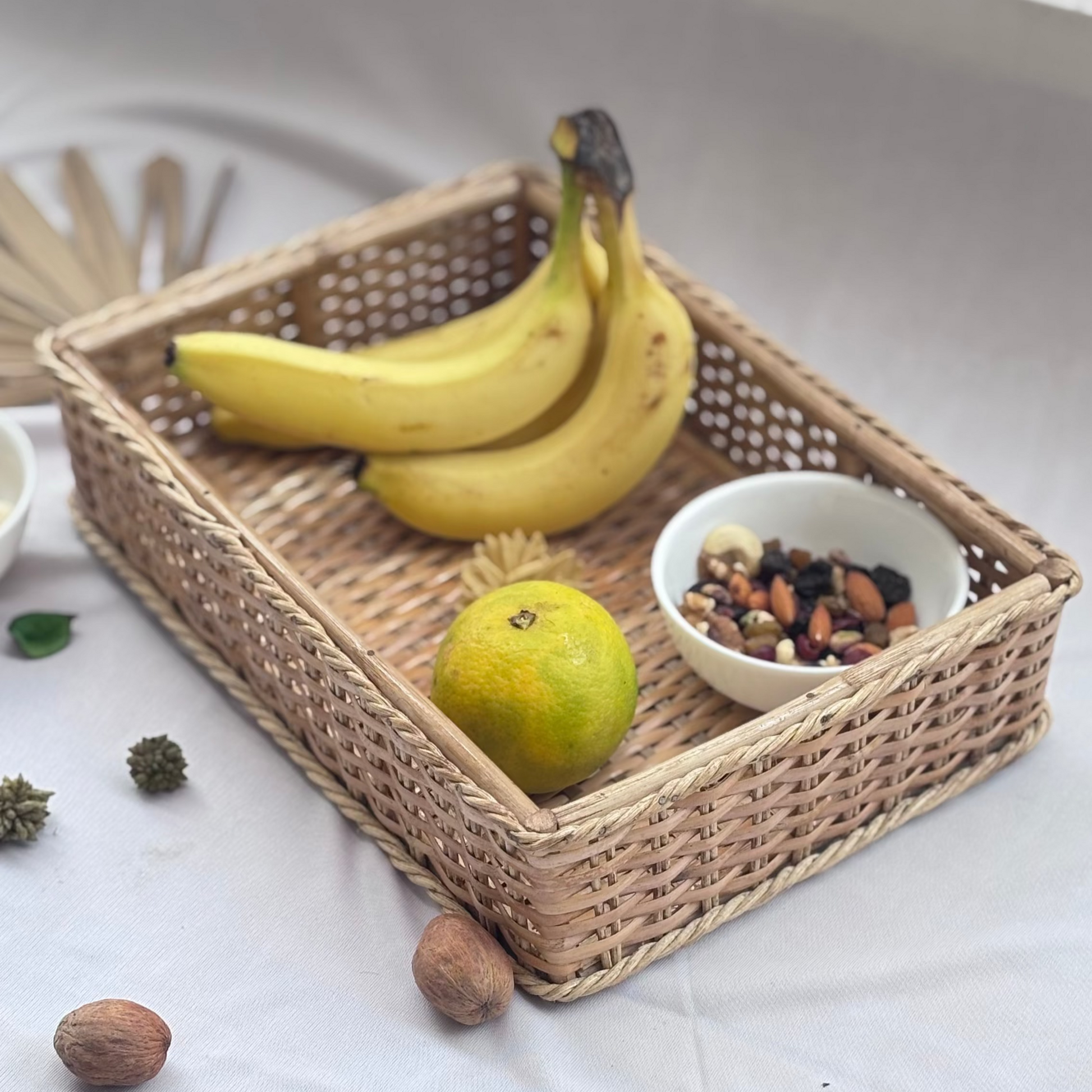 This handcrafted cane tray combines rustic charm with functional elegance, perfect for serving, organizing, or decorating your space. Made from durable, natural rattan, it features a sturdy, lightweight design.